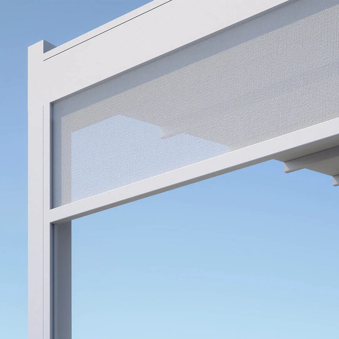 Am Tag bietet die integrierte Raso-Senkrechtmarkise idealen Sonnen- und Sichtschutz.