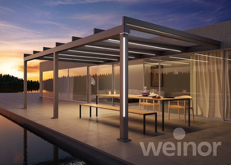 Wenn die Tage kälter werden, müssen Sie sich noch lange nicht ins Haus zurückziehen. Statten Sie Terrazza Pure einfach mit der rahmenlosen Glas-Schiebewand w17 easy von weinor aus, auch nachträglich. So können Sie Ihre Terrasse auch an sonnigen Wintertagen geschützt vor Wind und Nässe genießen – mit freiem Blick auf die Natur. Noch gemütlicher wird es in der weinor Glasoase® mit dem Heizsystem Tempura.